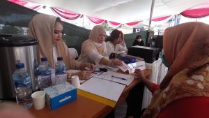 Hingga pukul 14.00 WIB, sebanyak 220 orang warga dari beberapa kecamatan telah dilayani pemeriksaan kesehatannya serta diberikan obat termasuk obat cacing oleh 3 orang dokter yaitu, dr Asri KM, dr. Haerul, dan dr April yang dibantu oleh beberapa orang tenaga medis dan apoteker serta ibu Arinta dan ibu Athea Sarastiani.
