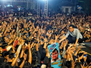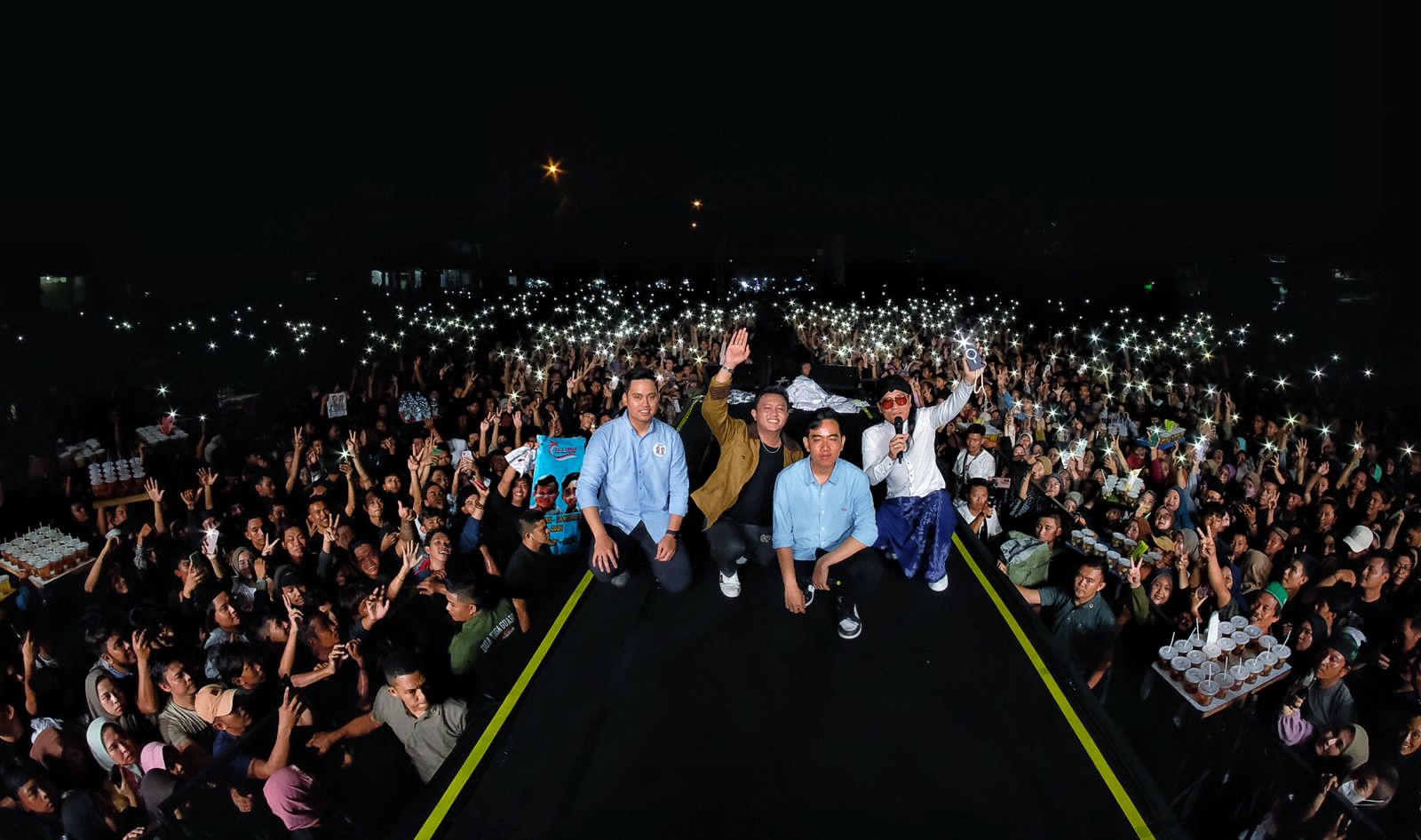 “Pokoke sehat kabeh (pokoknya sehat semua). Beda pilihan gak papa, sing penting seduluran kabeh (yang penting bersaudara semuanya), setuju?,” seru Gibran yang kemudian dijawab setuju oleh seluruh penonton konser tersebut.