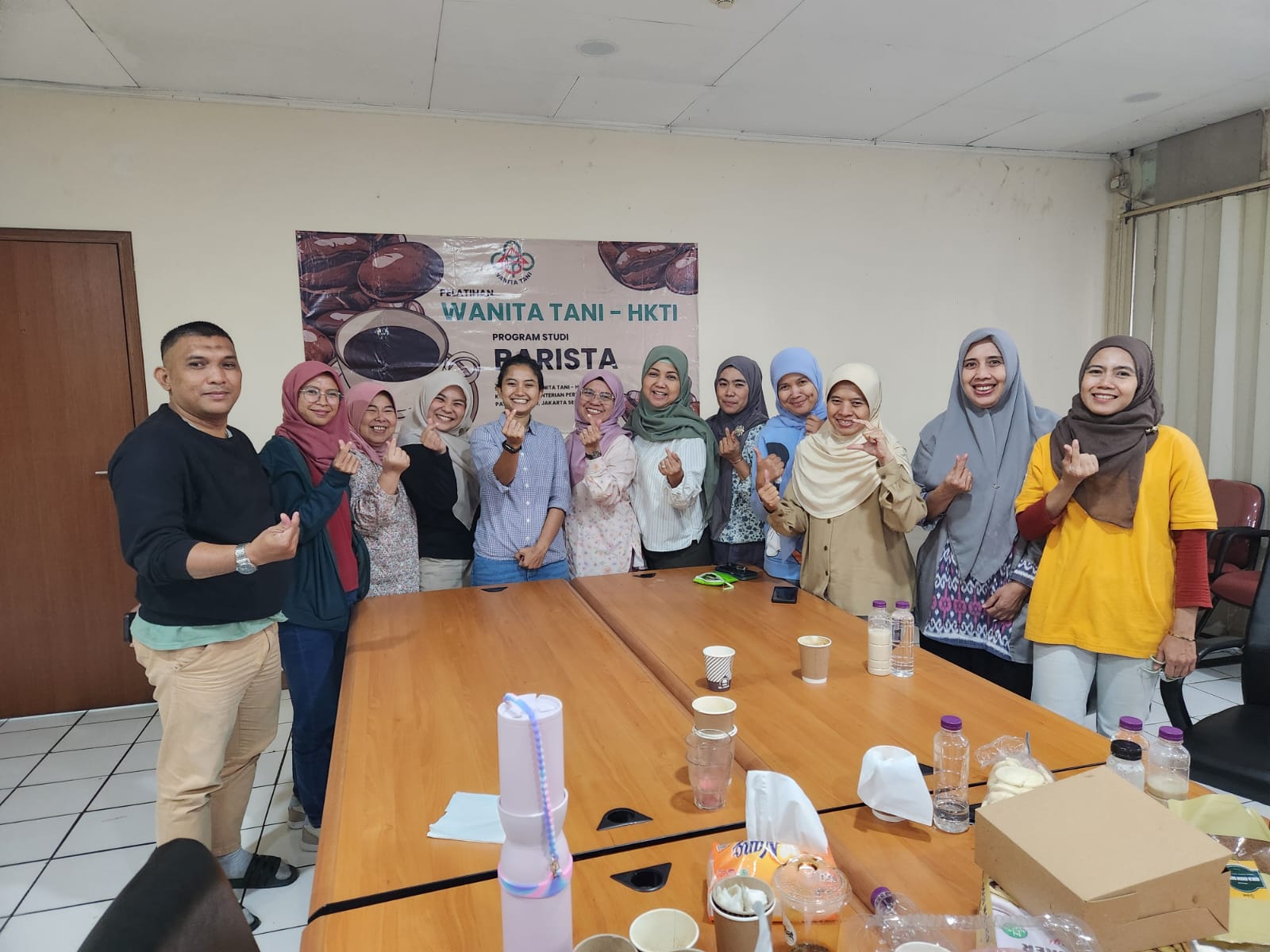 Asap kopi hangat mengepul dari cangkir-cangkir kecil yang tersusun rapi di meja pelatihan. Di sudut ruangan, deru mesin espresso berpadu dengan gelak tawa peserta. Bukan di sebuah kedai kopi ternama, melainkan di ruang pelatihan sederhana milik Wanita Tani Indonesia – HKTI (Himpunan Kerukunan Tani Indonesia).
