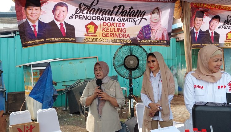 Swarapita.com, Bogor, Jawa Barat – Anggota Dewan Perwakilan Rakyat Daerah (DPRD) Provinsi Jawa Barat, Ir. Prasetyawati, MM bersama tim Layanan Kemanusiaan Dewan Pimpinan Pusat (DPP) Partai Gerakan Indonesia Raya (Gerindra) kembali menggelar kegiatan pengobatan gratis di Jalan Ciangsana, Gunung Putri, Kabupaten Bogor, Minggu, 28 Mei 2023.