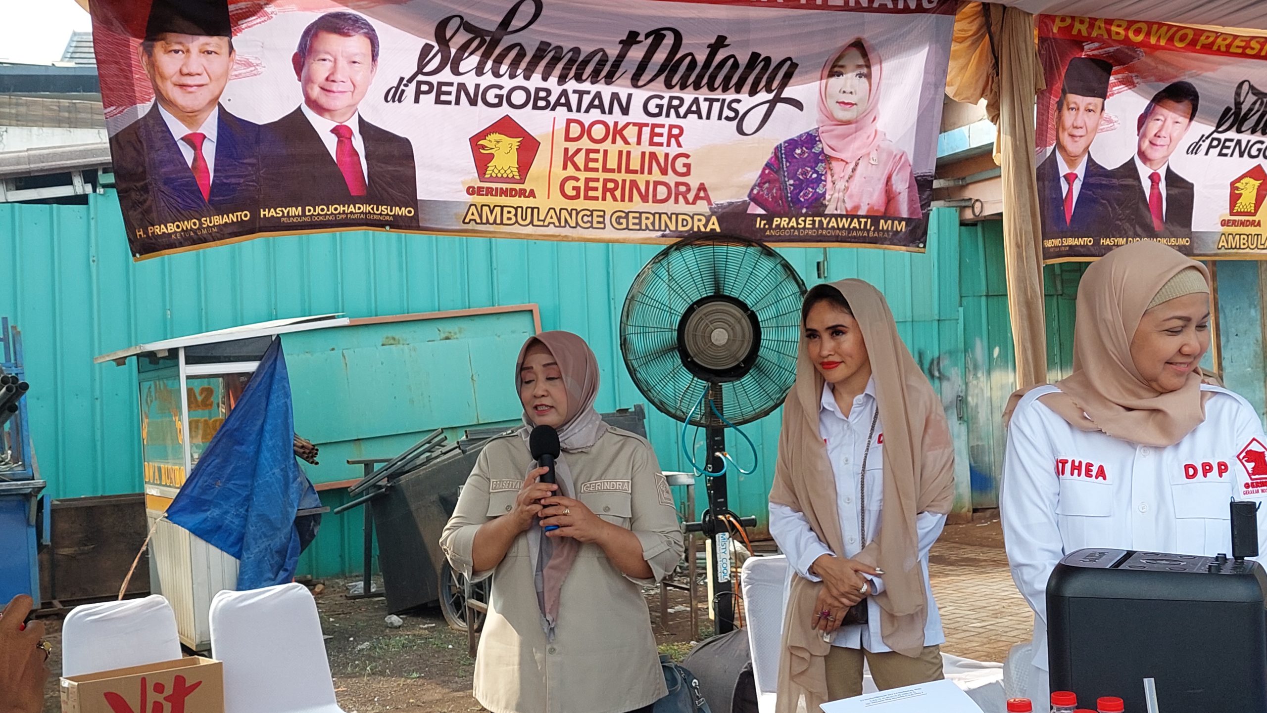 Dalam sambutannya Anggota DPRD Jawa Barat, Ir. Prasetyawati, MM dengan memperkenalkan diri sebagai anggota DPRD Provinsi Jawa Barat serta tim Layanan Kemanusiaan DPP Partai Gerindra yang dipimpin oleh Misrayanti, SE., MM, yang mendapatkan penugasan khusus dari Prabowo Subianto dan Hashim Djojohadikusumo untuk menyapa dan menemui masyarakat melalui pengobatan gratis.