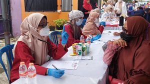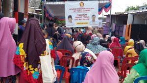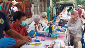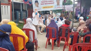 ”Kegiatan ini bagus, ada pemeriksaan orang sakit, dapat sembako juga, Alhamdulillah… mudah-mudahan ada lagi yaa,” ucap ibu Rusmiati yang didampingi oleh beberapa ibu yang melakukan pemeriksaan kesehatan.