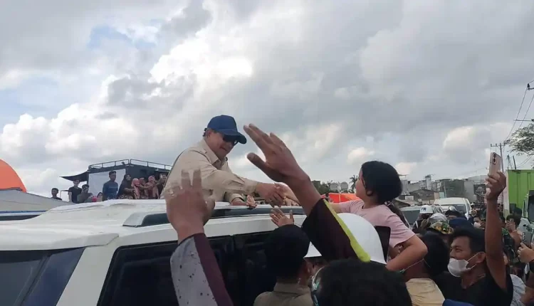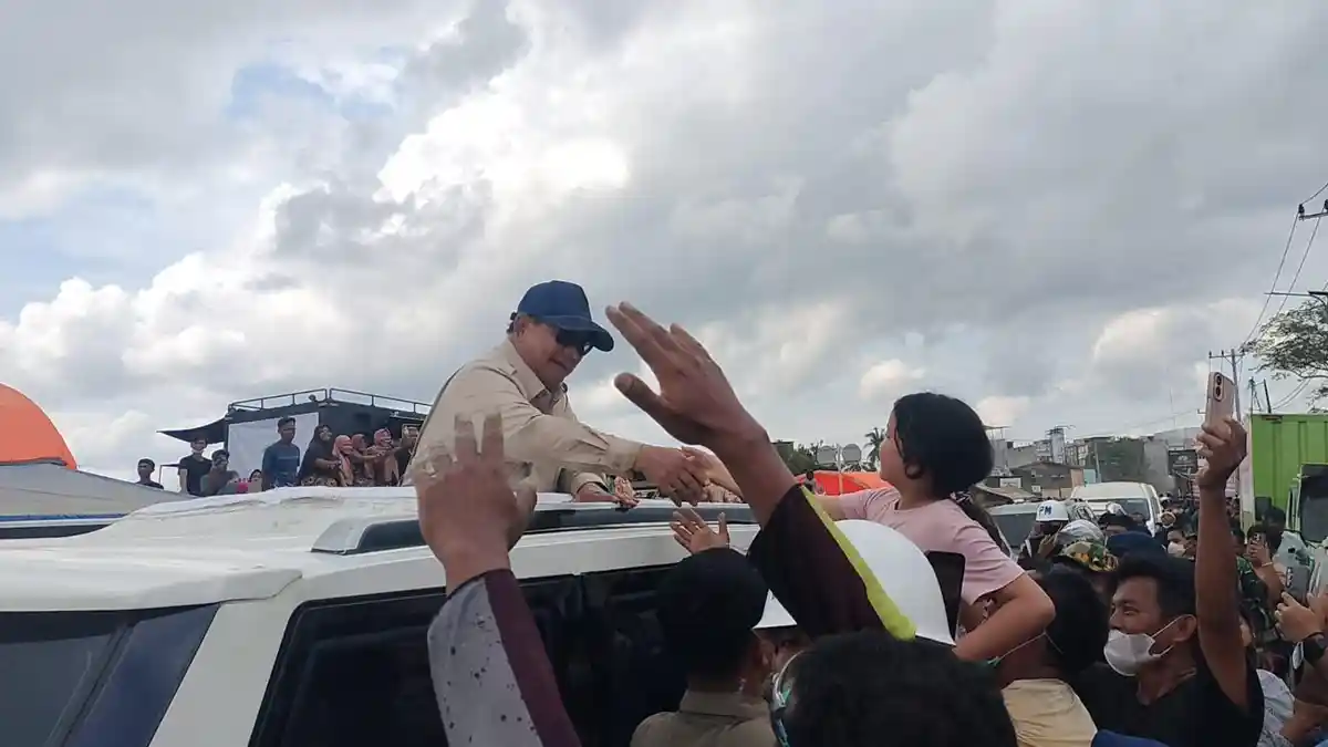 Saat melalui jalan Lintas Nasional dengan Mobil Maung RI 1 warna putih menuju salah titik pengungsian, sebagian masyarakat berulang-ulang meneriakkan, “Pak Prabowo.. pak Prabowo…”.