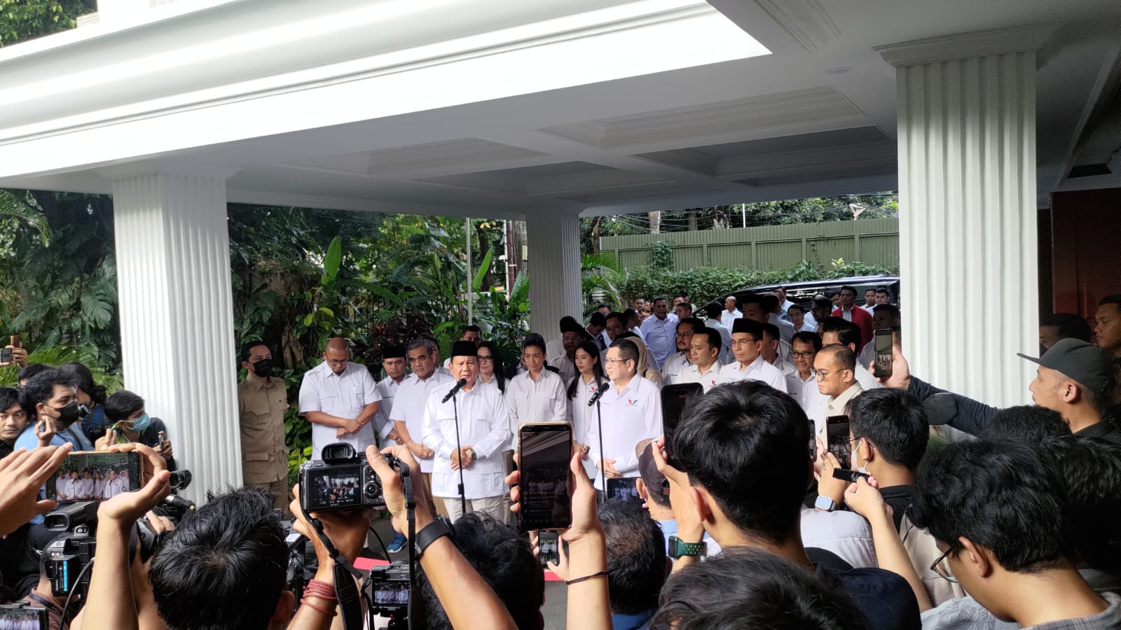“Bahwa saya yakin kawan-kawan di partai lain punya keinginan untuk berbakti pada bangsa dan rakyat karena itu hendaknya demokrasi kita. Kita bahas banyak masalah tapi intinya itu.” jelas Prabowo dalam Konferensi Pers yang dilakukan di selasar Rumah Kertanegara.