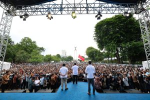 Swarapita.com, Jakarta – Capres nomor urut 2, Prabowo Subianto mendengarkan langsung keluhan para ojek online (ojol) di acara deklarasi untuk Prabowo-Gibran, di Lapangan Banteng, Pasar Baru, Jakarta, Jumat, (19/1).