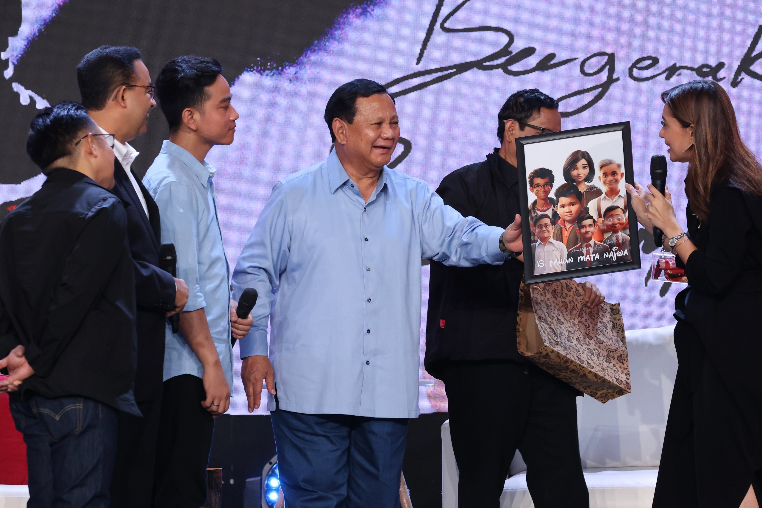 Swarapita.com, Jakarta – Kedekatan capres Koalisi Indonesia Maju Prabowo Subianto dengan wakilnya Gibran Rakabuming Raka, “diuji” di acara HUT ke-13 Mata Najwa di Taman Ismail Marzuki, Minggu (19/11).
