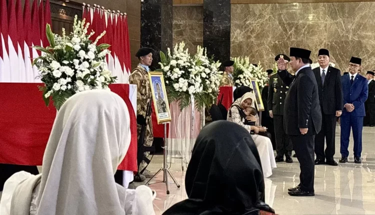 Presiden Prabowo bersama Presiden Ke-6 SBY dan Menhan Sjafrie serta pejabat negara lainnya kemudian menyaksikan peti jenazah tiga putra terbaik bangsa itu diusung untuk prosesi upacara yang akan dipimpin Kepala Staf TNI Angkatan Darat Jenderal TNI Maruli Simanjuntak.