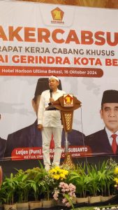 Swarapita.com, Kota Bekasi – Rabu 16 Oktober 2024.Jelang PEMILU serentak 2024, yang akan diselenggarakan oleh negara, pada 27 November 2024 mendatang, Partai GERINDRA, mempersiapkan kadernya, untuk rapatkan barisan, satukan gerakan dalam pemenangan PILWAKOT kota Bekasi dan PILGUB JABAR.