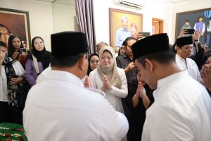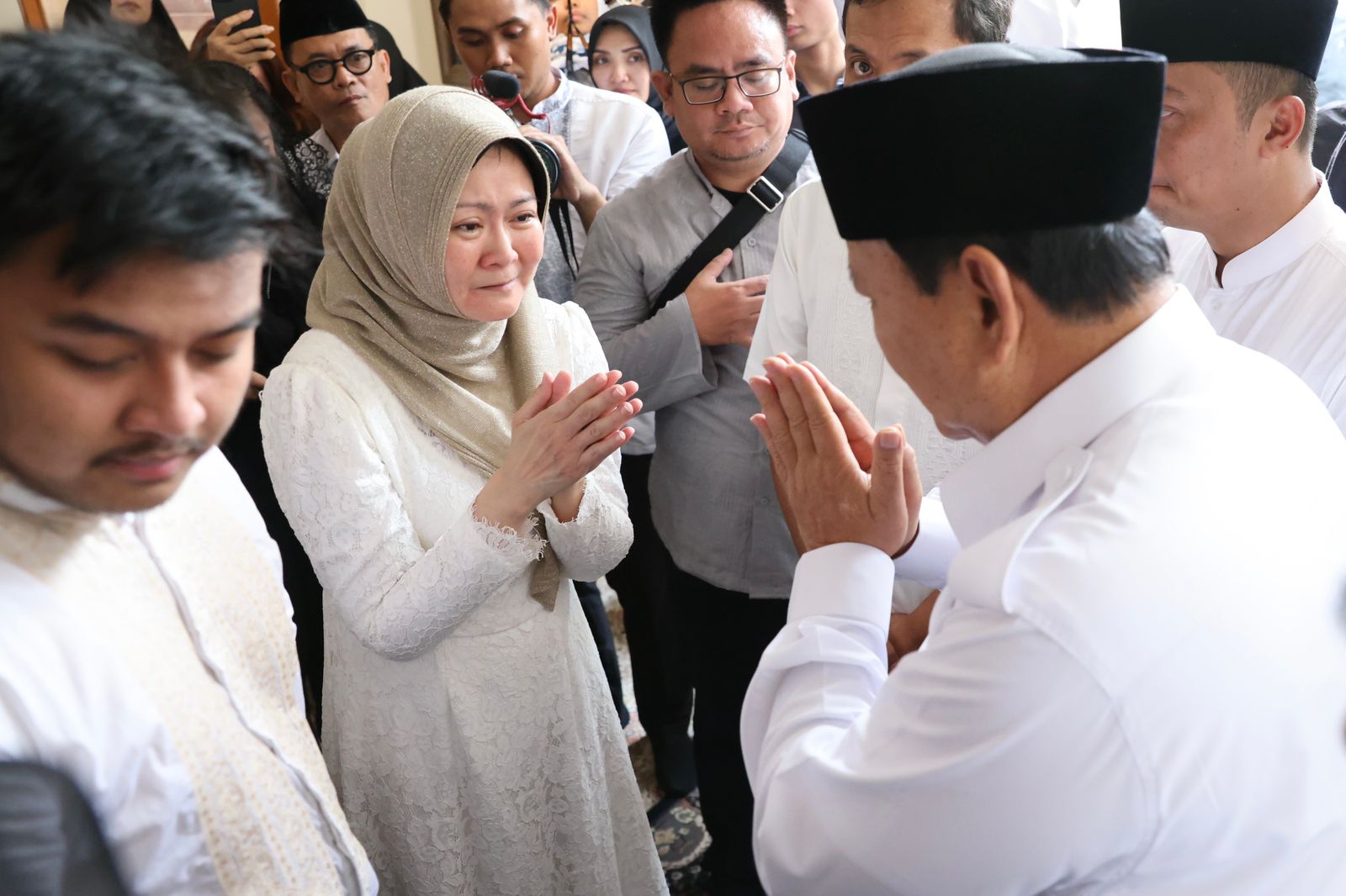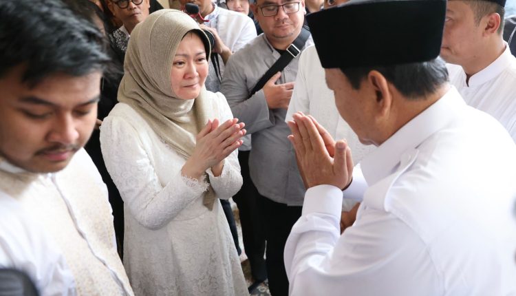 Seusai melayat Prabowo pun berpamitan kepada pihak keluarga Desmond yang ditinggalkan yakni seorang Istri dan dua orang anak.