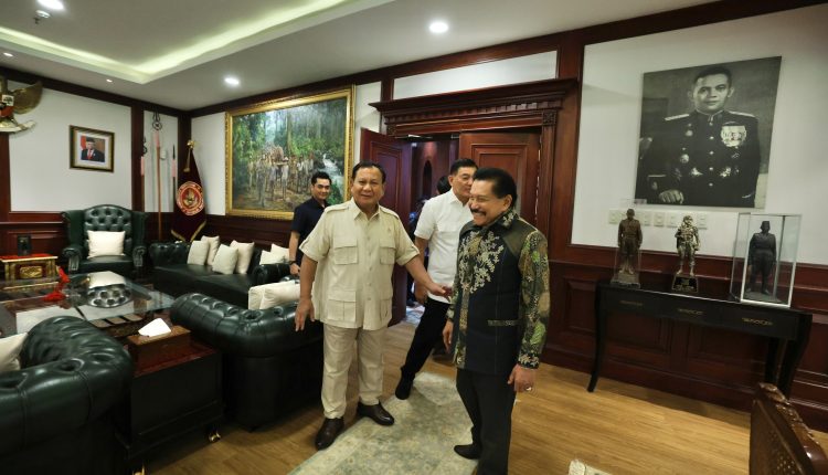 Swarapita.com, – Jakarta – Menteri Pertahanan (Menhan) RI Prabowo Subianto menerima kunjungan silaturahmi Jenderal TNI (Purn.) A. M. Hendropriyono di Kantor Kementerian Pertahanan (Kemhan) RI, Jakarta, Selasa (5/12/2023).